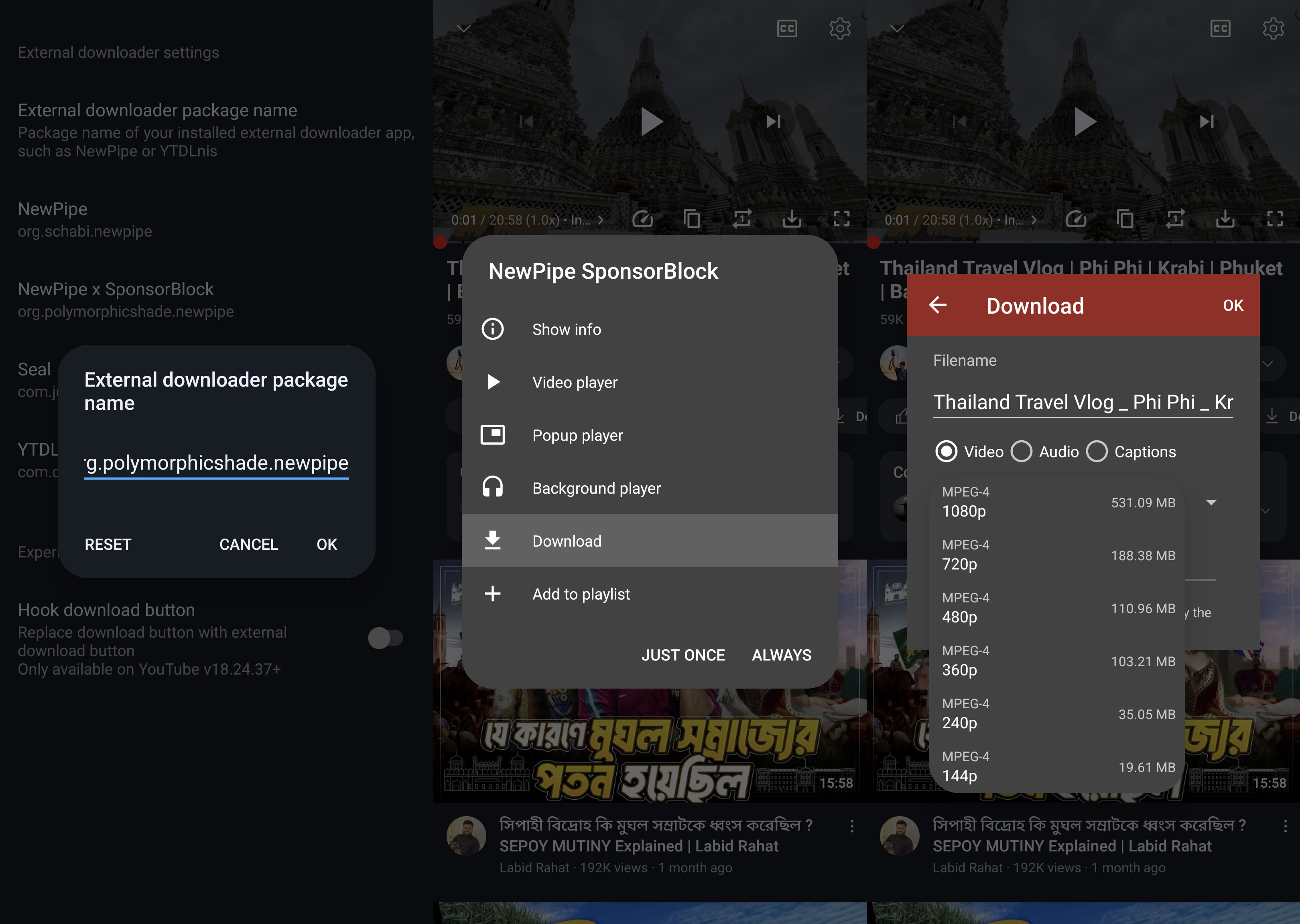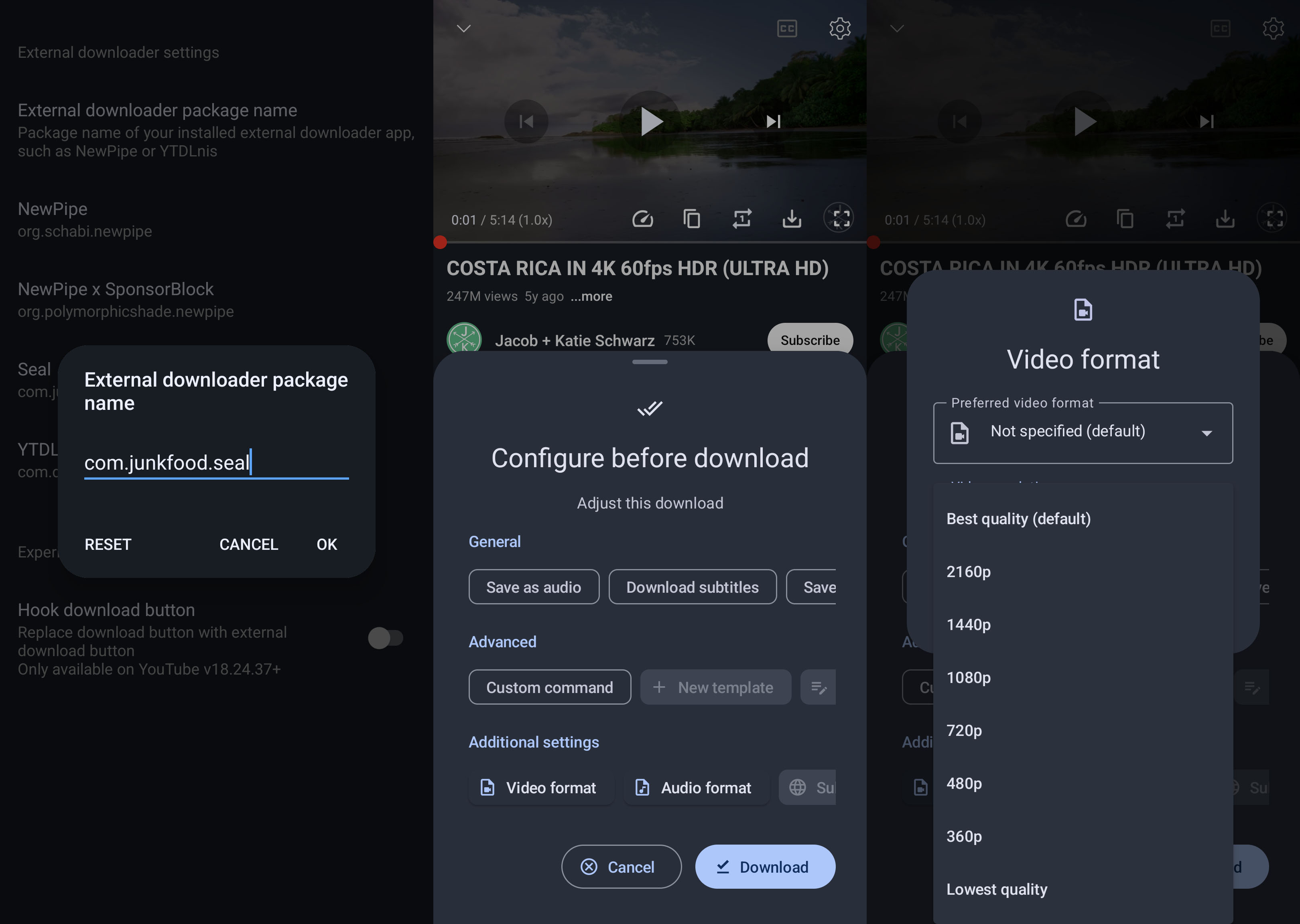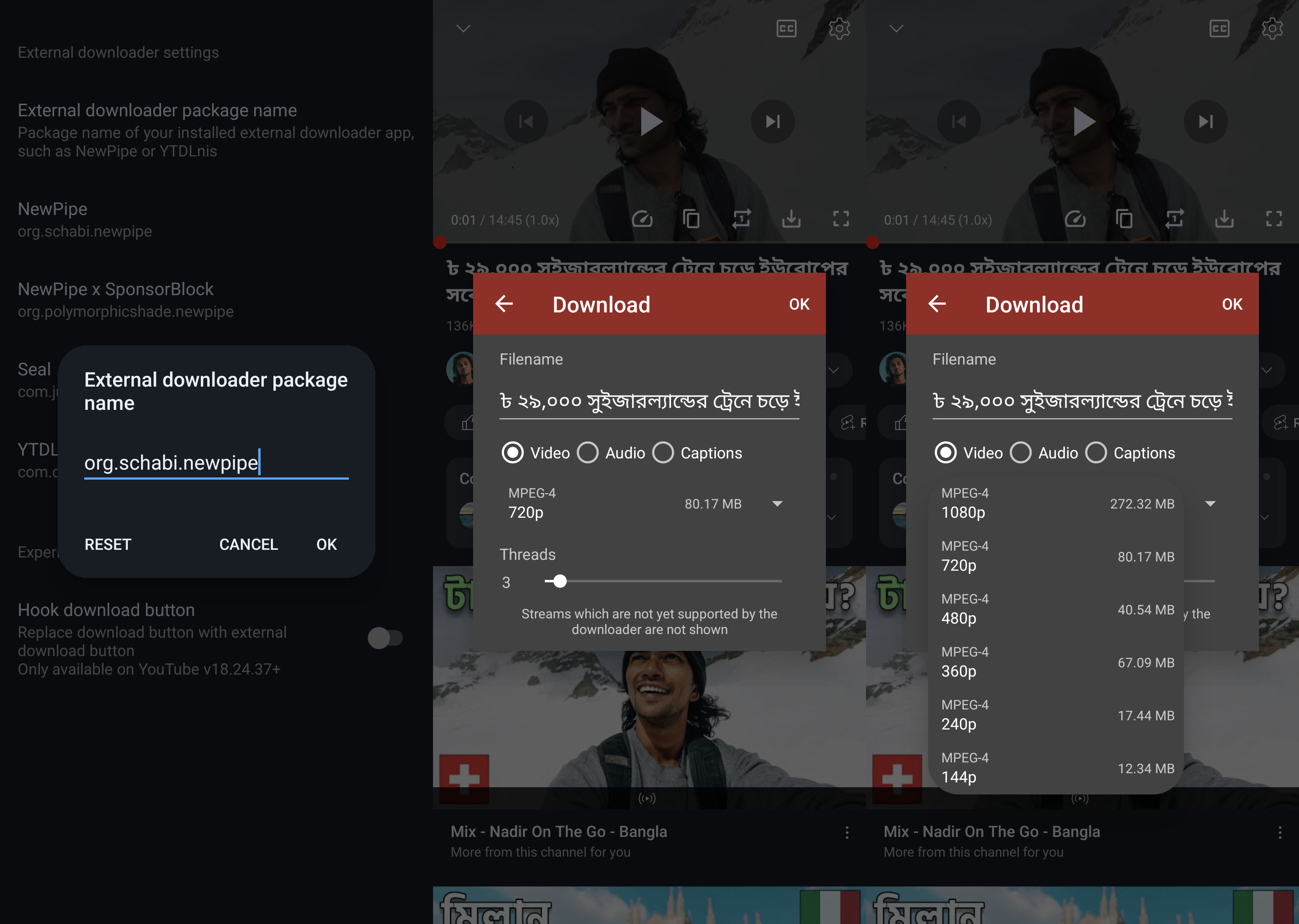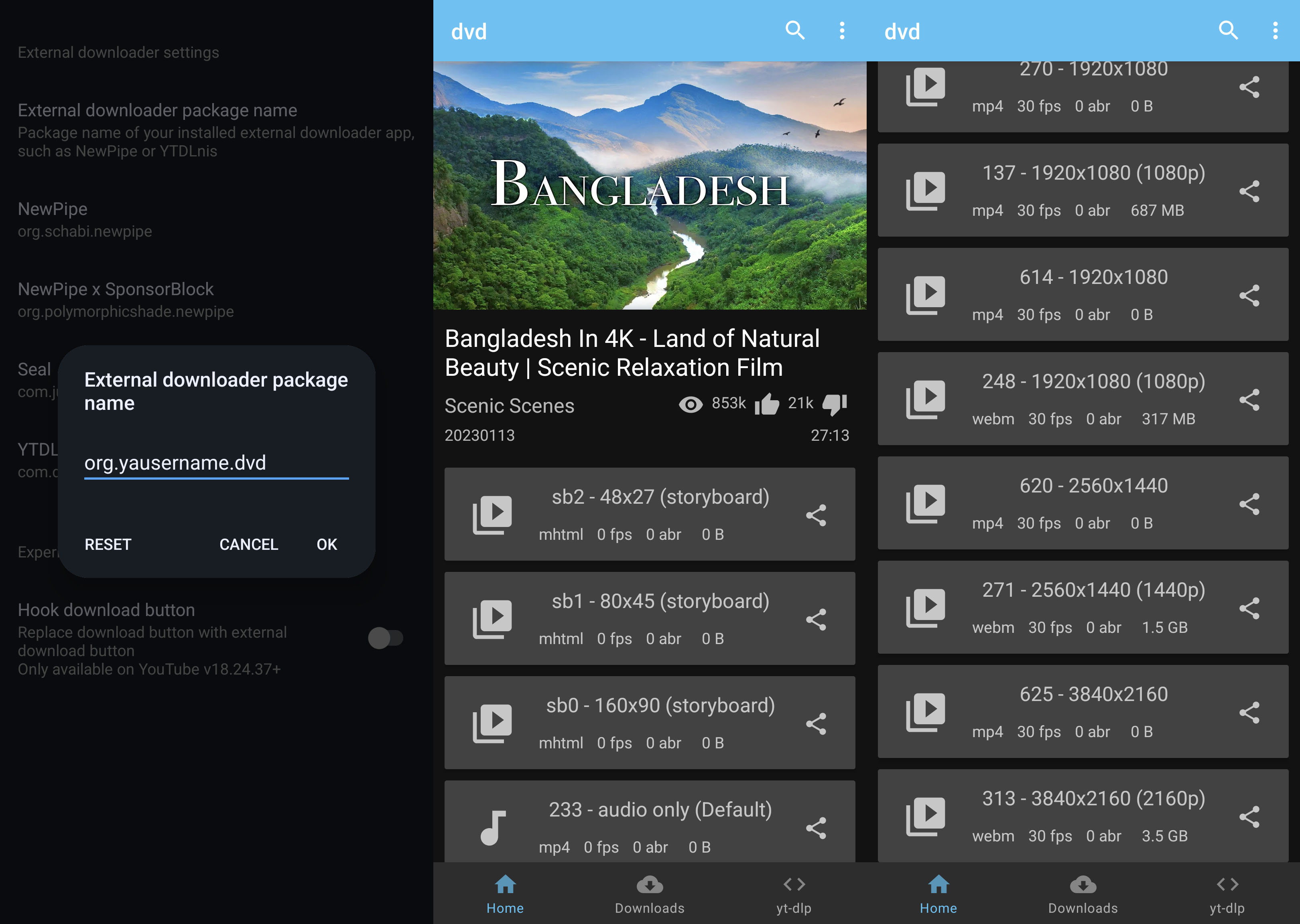 The package org.schabi.newpipe belongs to NewPipe. If you prefer a different downloader, please paste its corresponding package here.