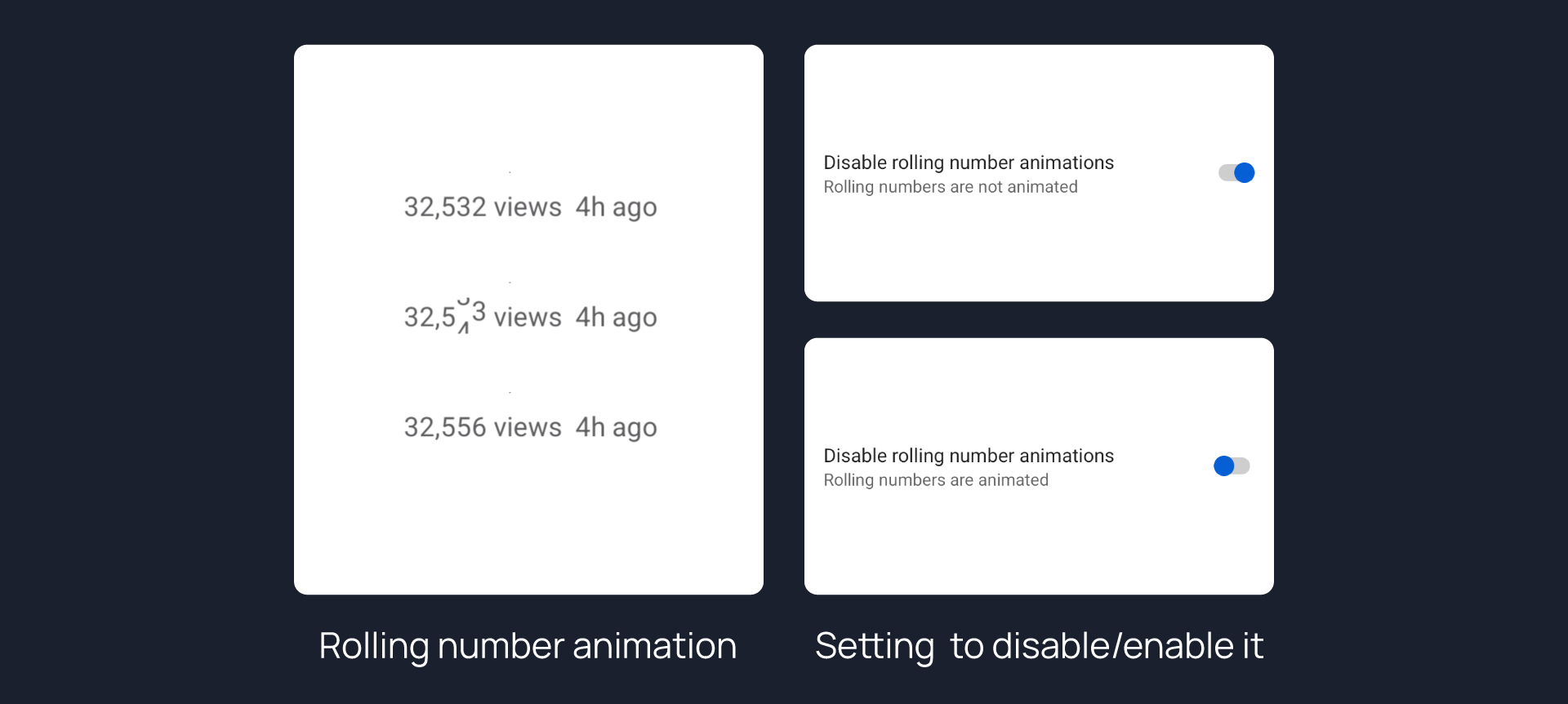 Disable rolling animation for view count, like and dislikes.