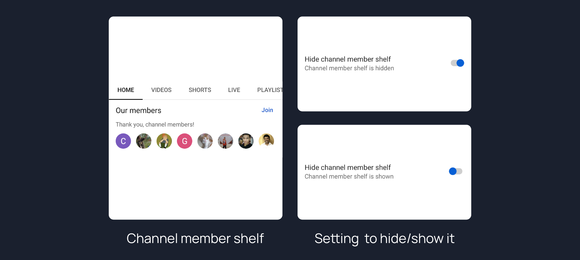 Hides channel member shelf from channel page