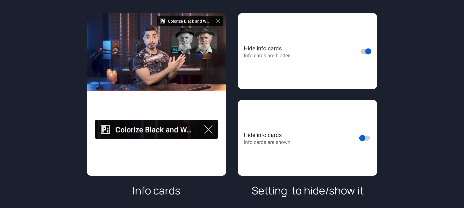 Hides info cards in videos.