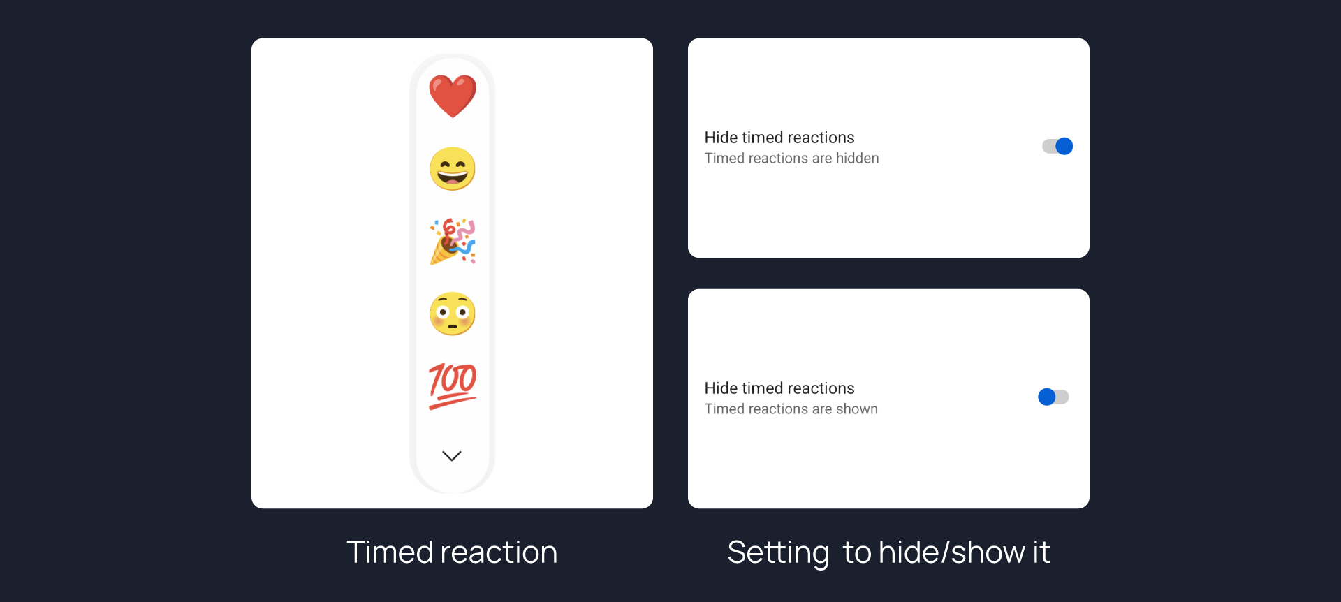 Hides Timed Reaction from video comments, live chat.