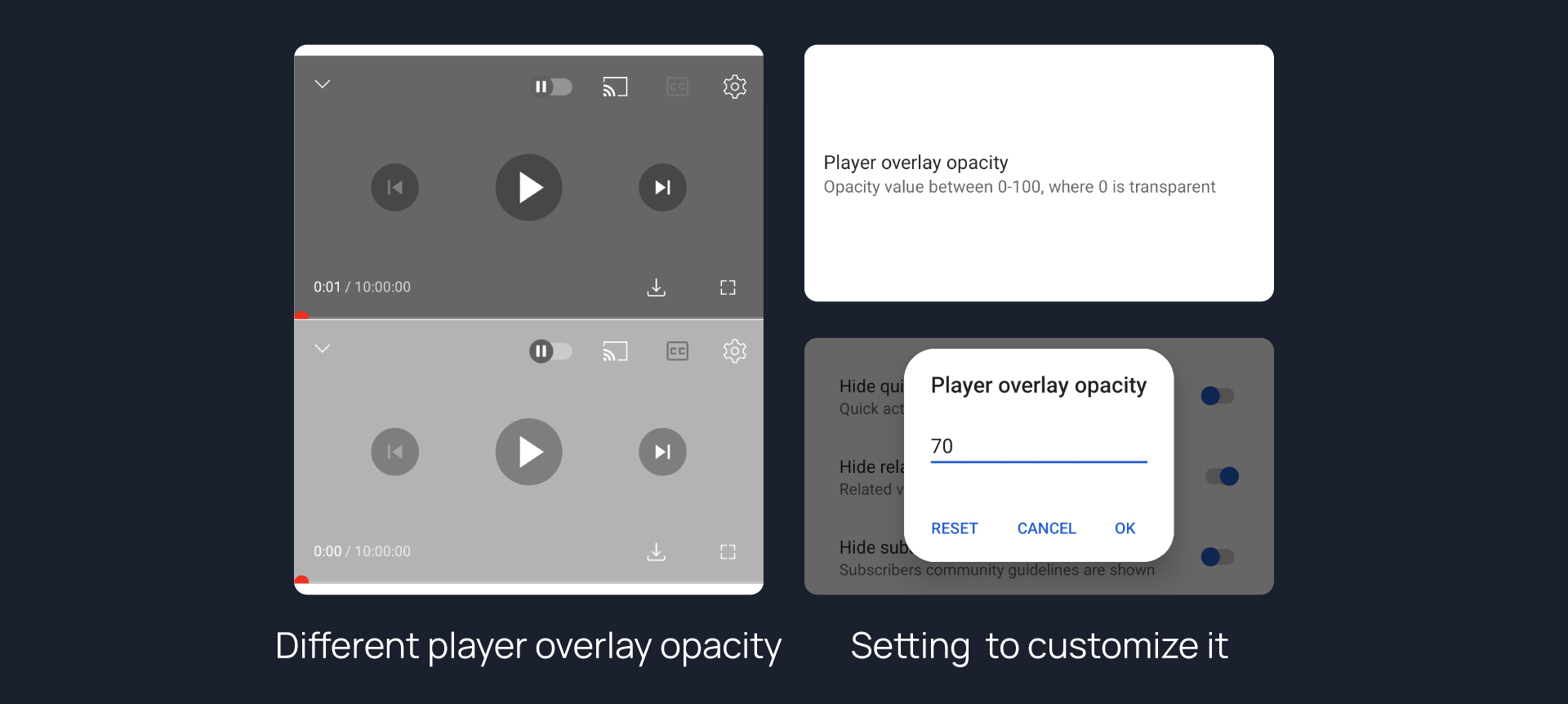 Option to set custom opacity for player overlay buttons.