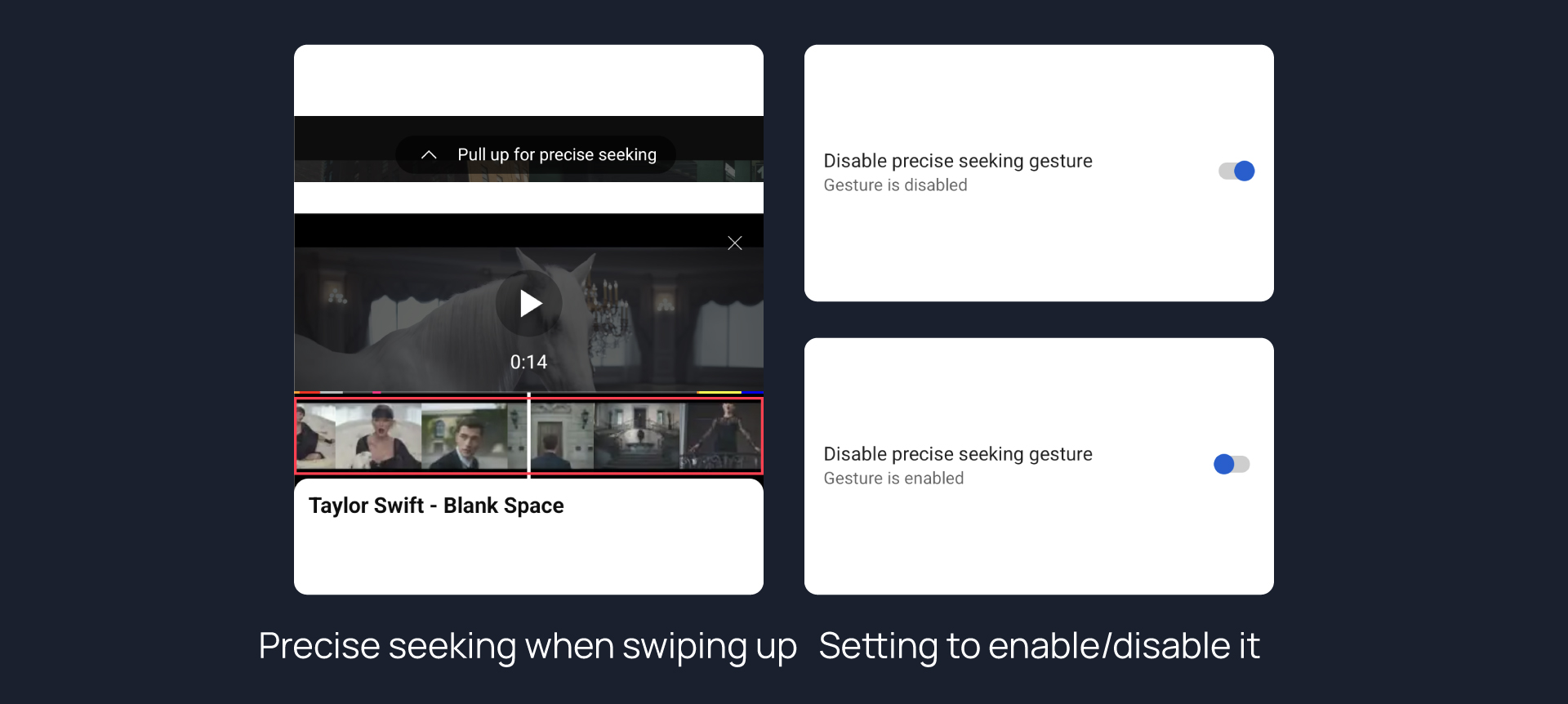 Adds an option to disable precise seeking when swiping up on the seekbar.