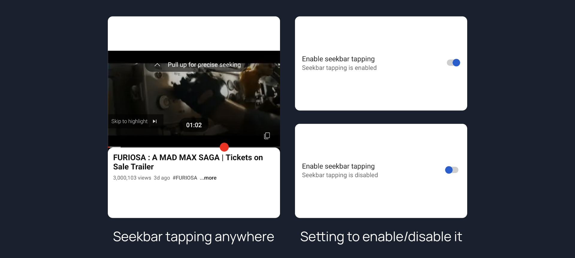 Adds an option to enable tap-to-seek on the seekbar of the video player.