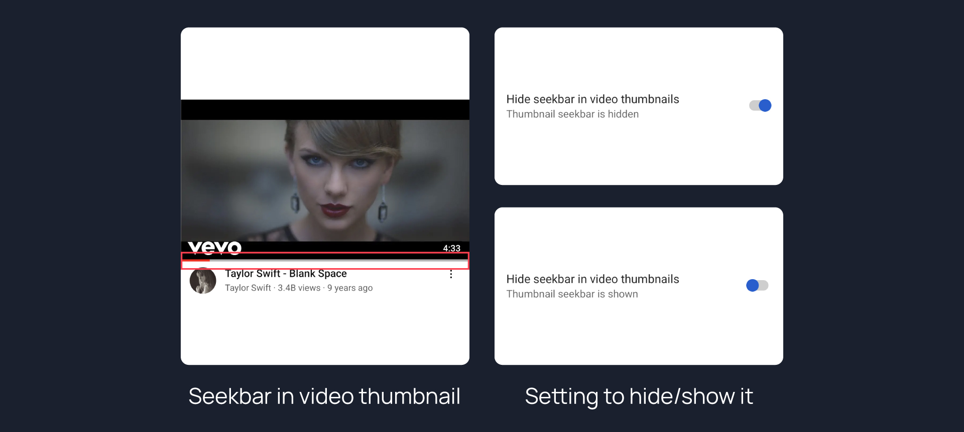 Hides seekbar from video thumbnails.