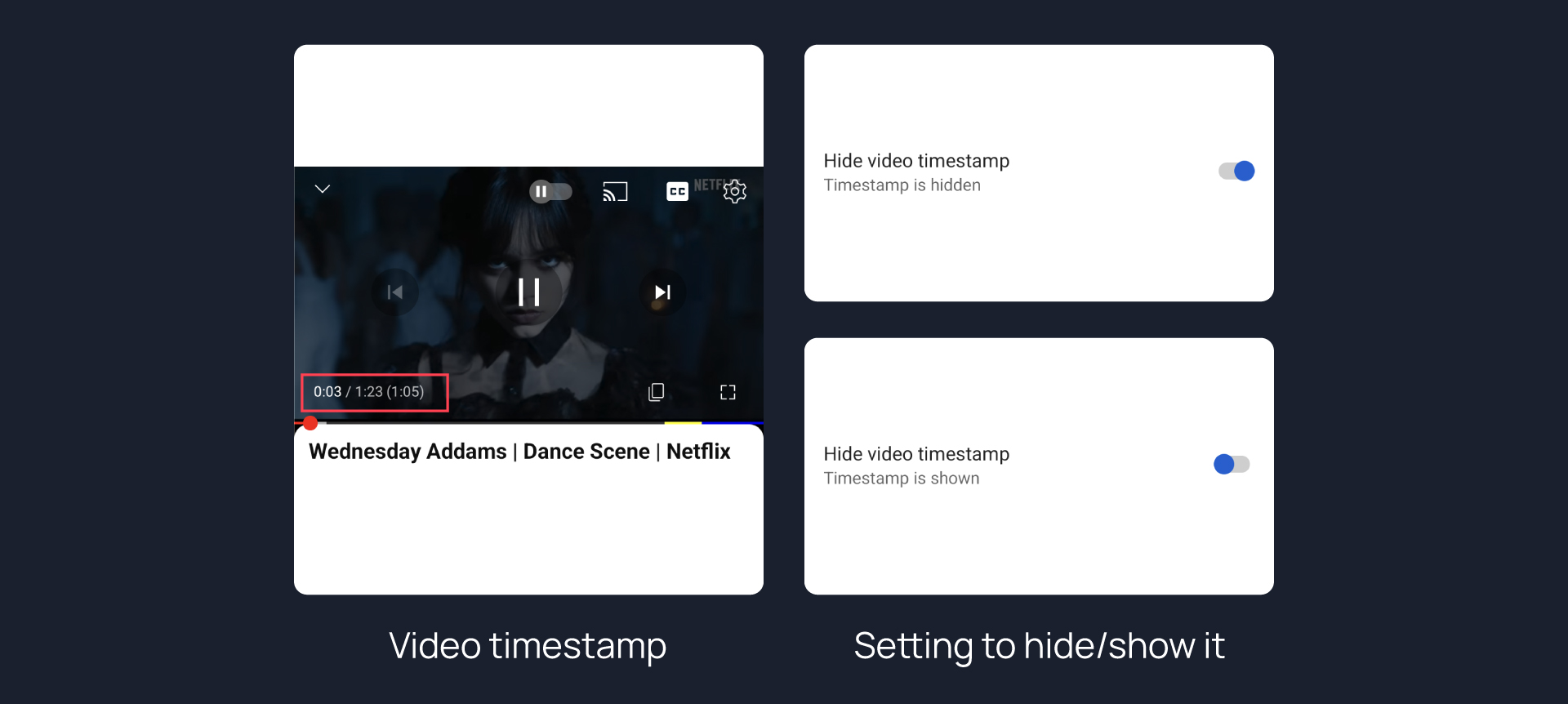 Hides timestamp in video player.