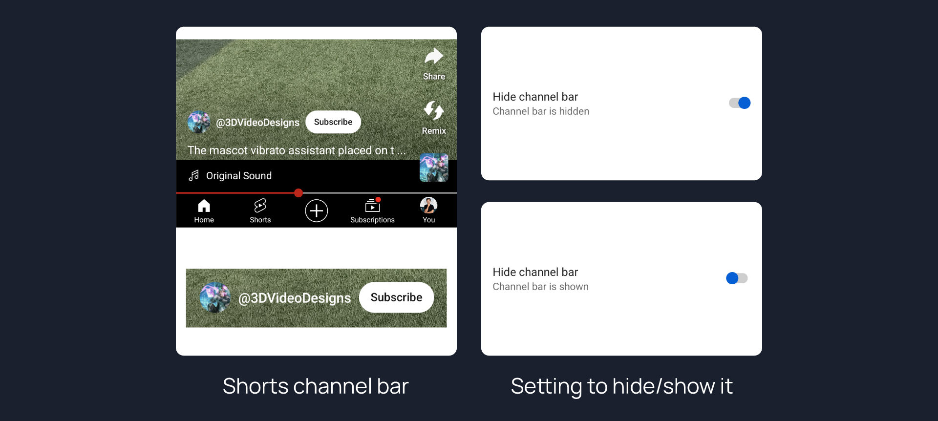 Hides channel bar from Shorts.