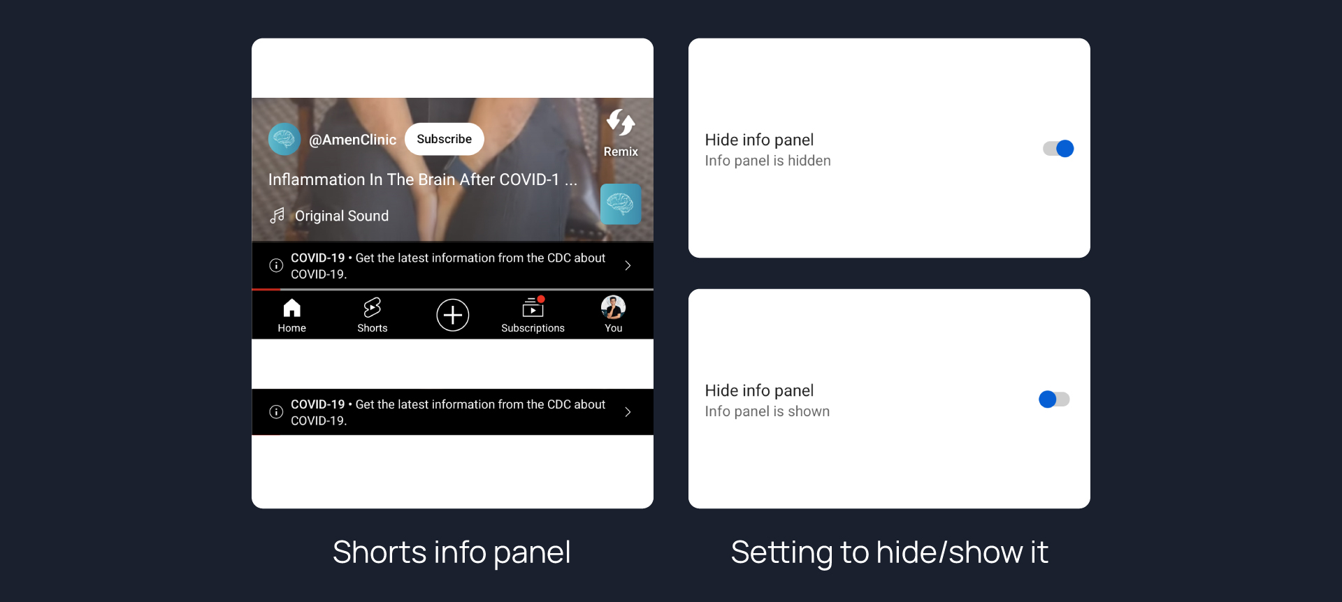 Hides important info panel in shorts.