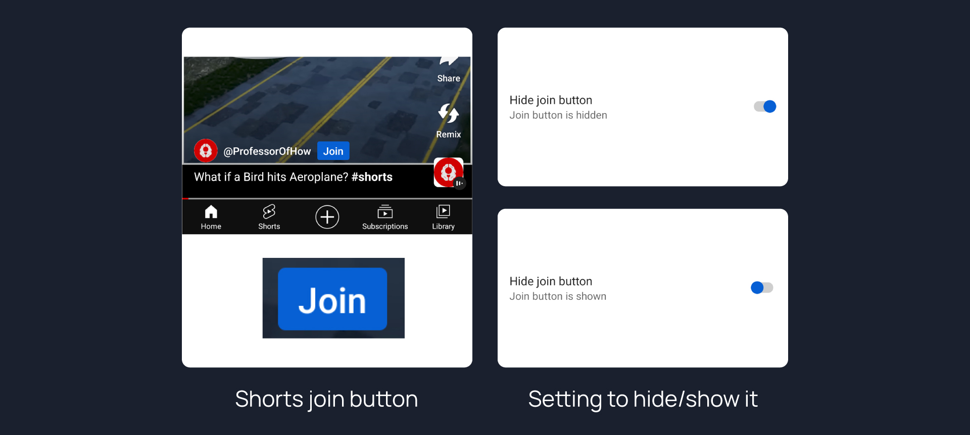 Hides join button in Shorts.