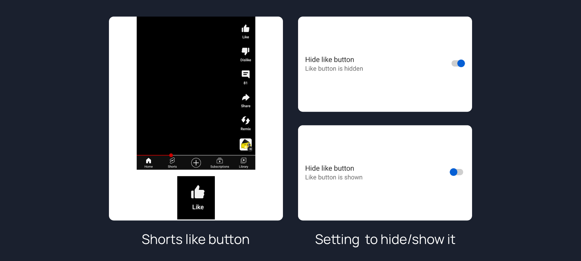 Hides like button in Shorts.
