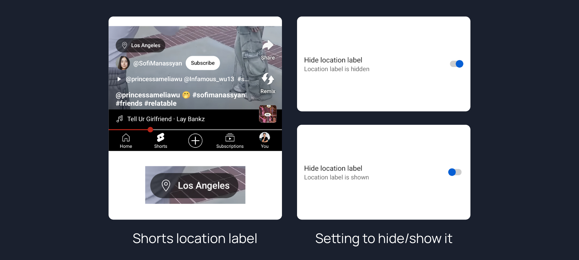 Hides location label from Shorts.