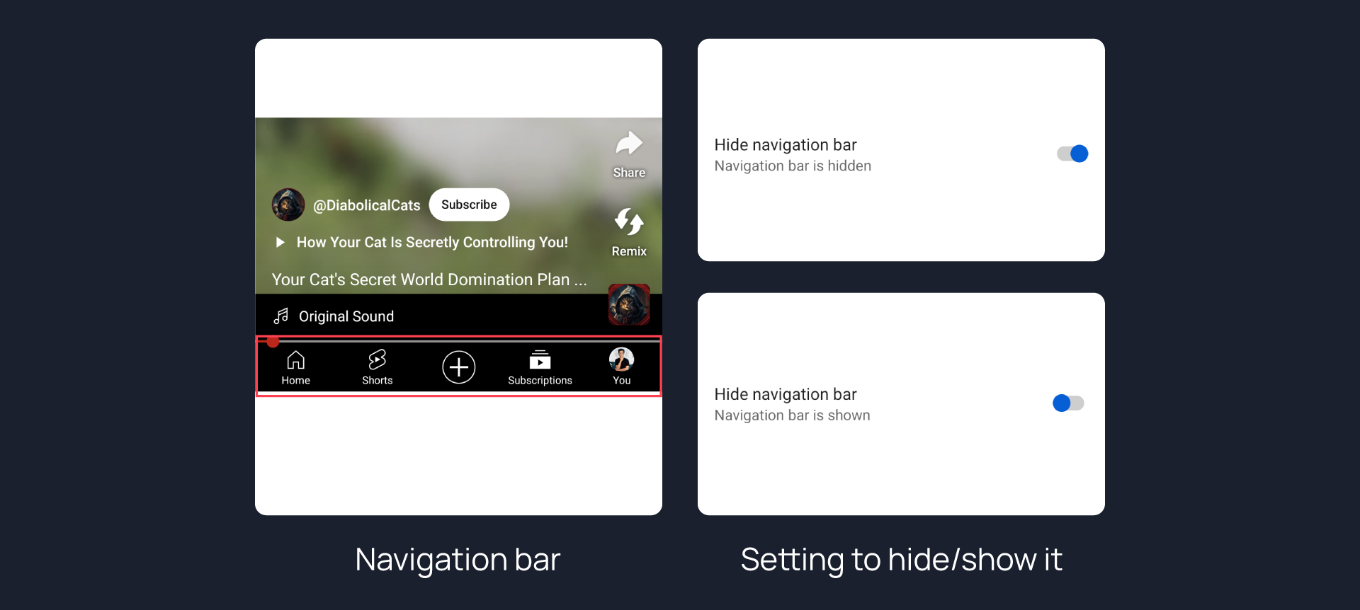 Hides navigation bar when playing shorts.