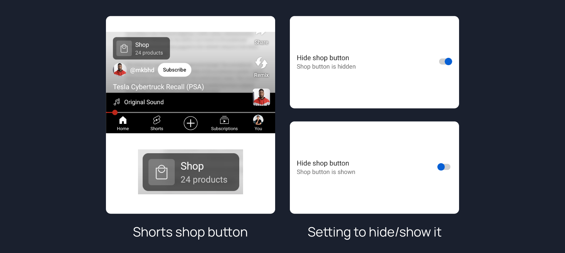 Hides shop button in Shorts.