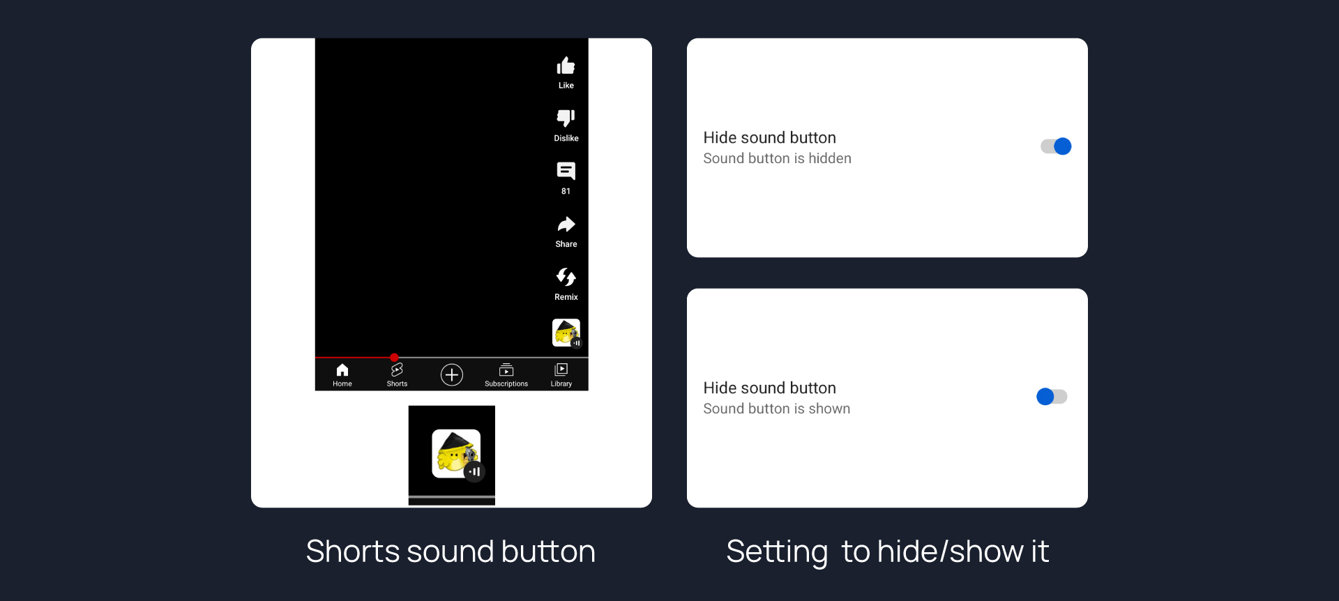 Hides sound button in Shorts.