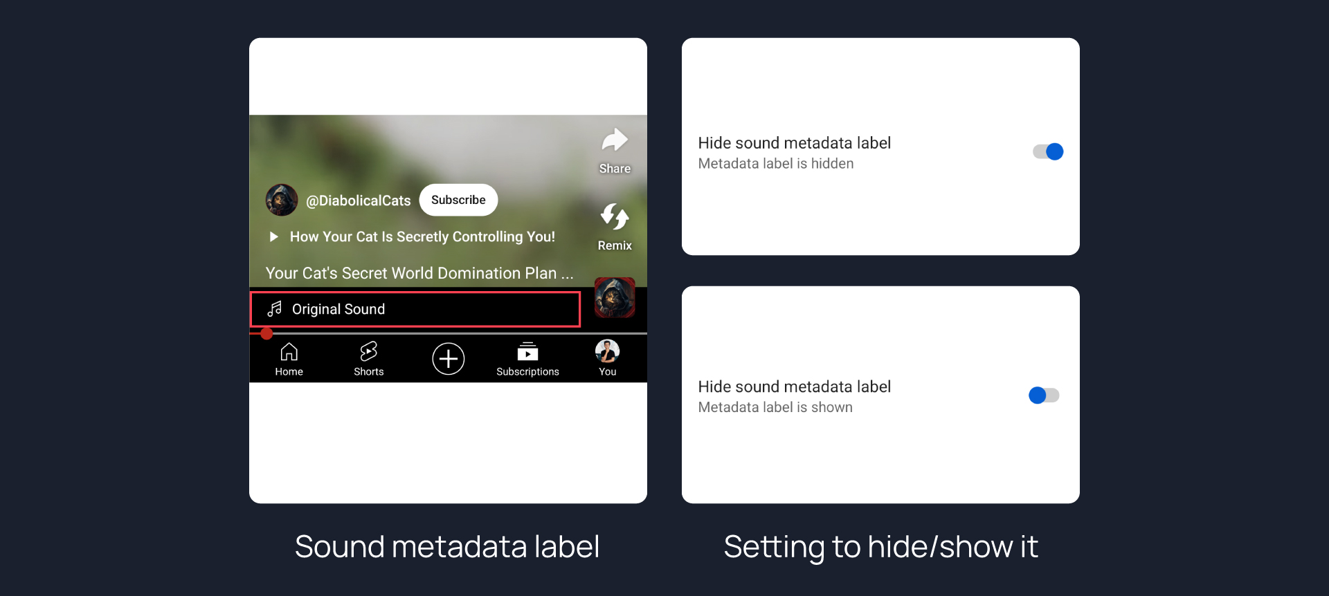 Hides sound metadata label from Shorts.