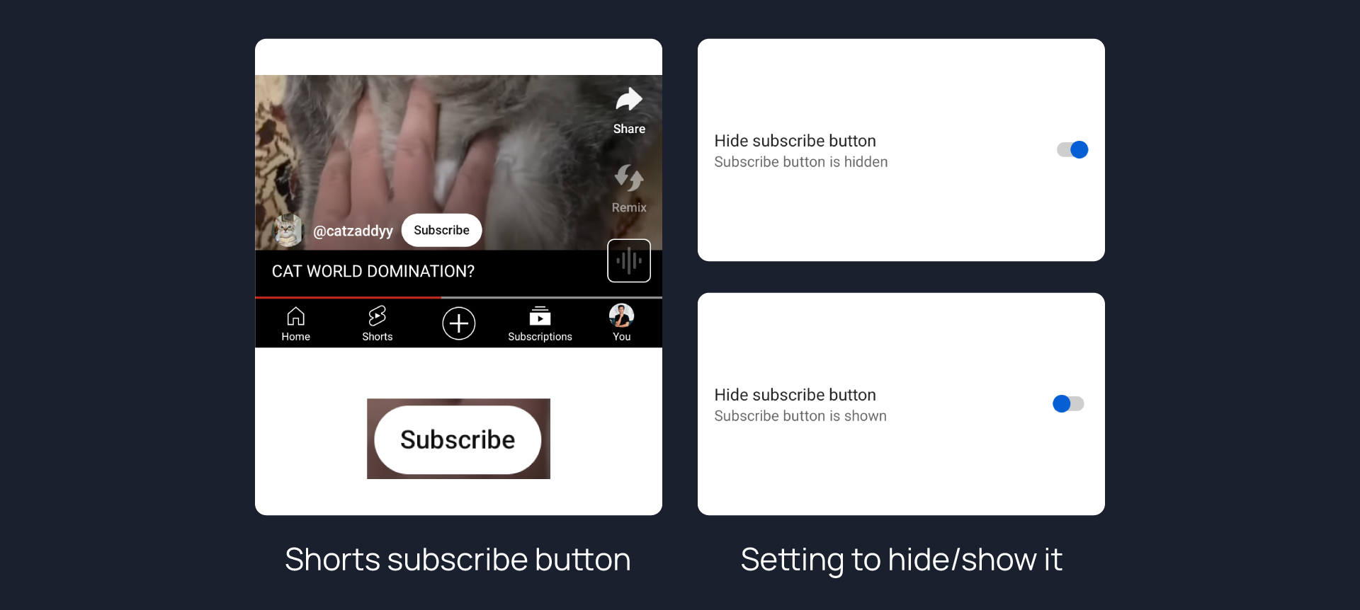 Hides subscribe button in Shorts.