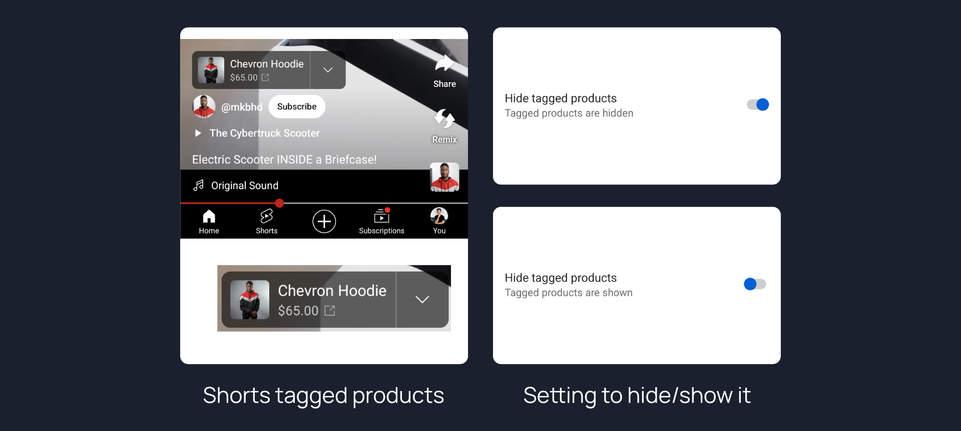 Hides tagged products in Shorts.