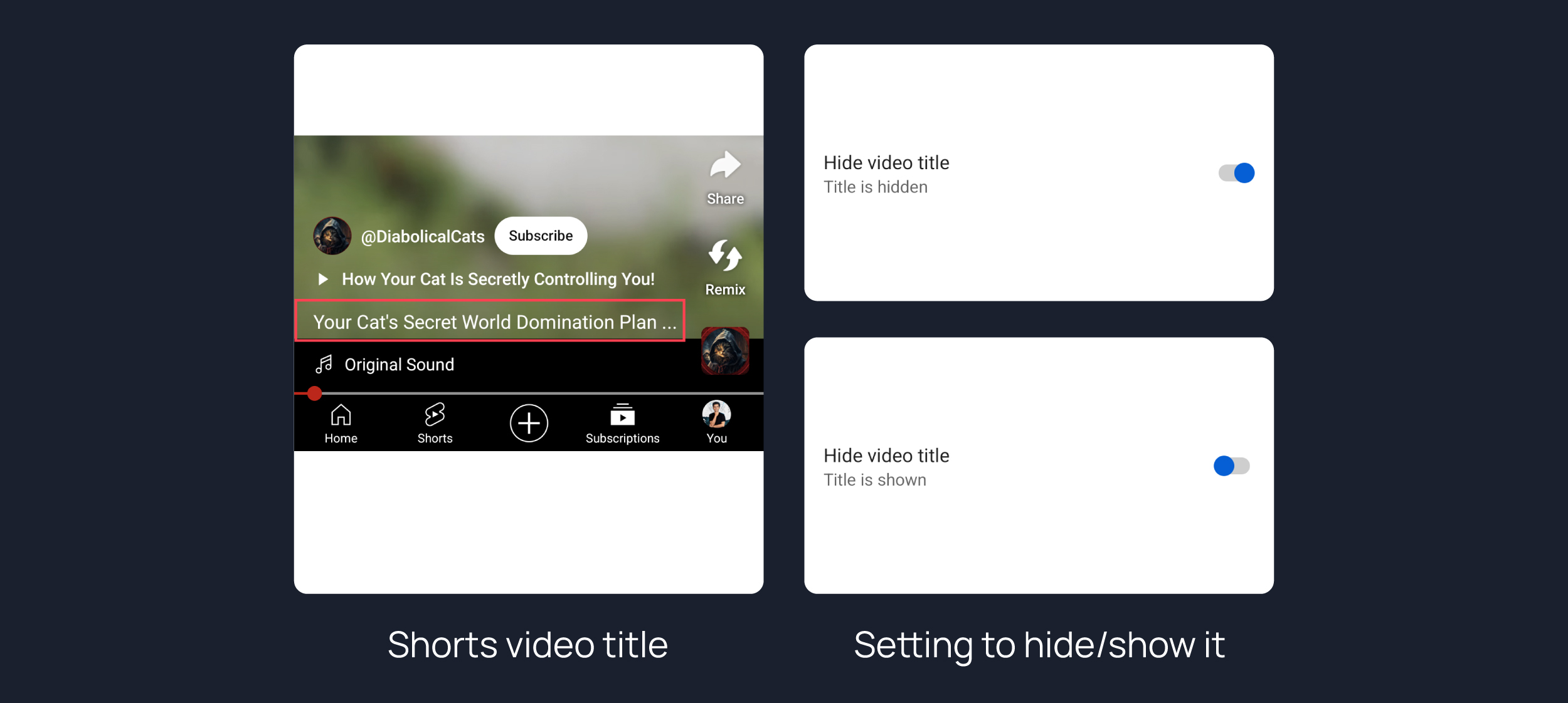 Hides video title from Shorts.