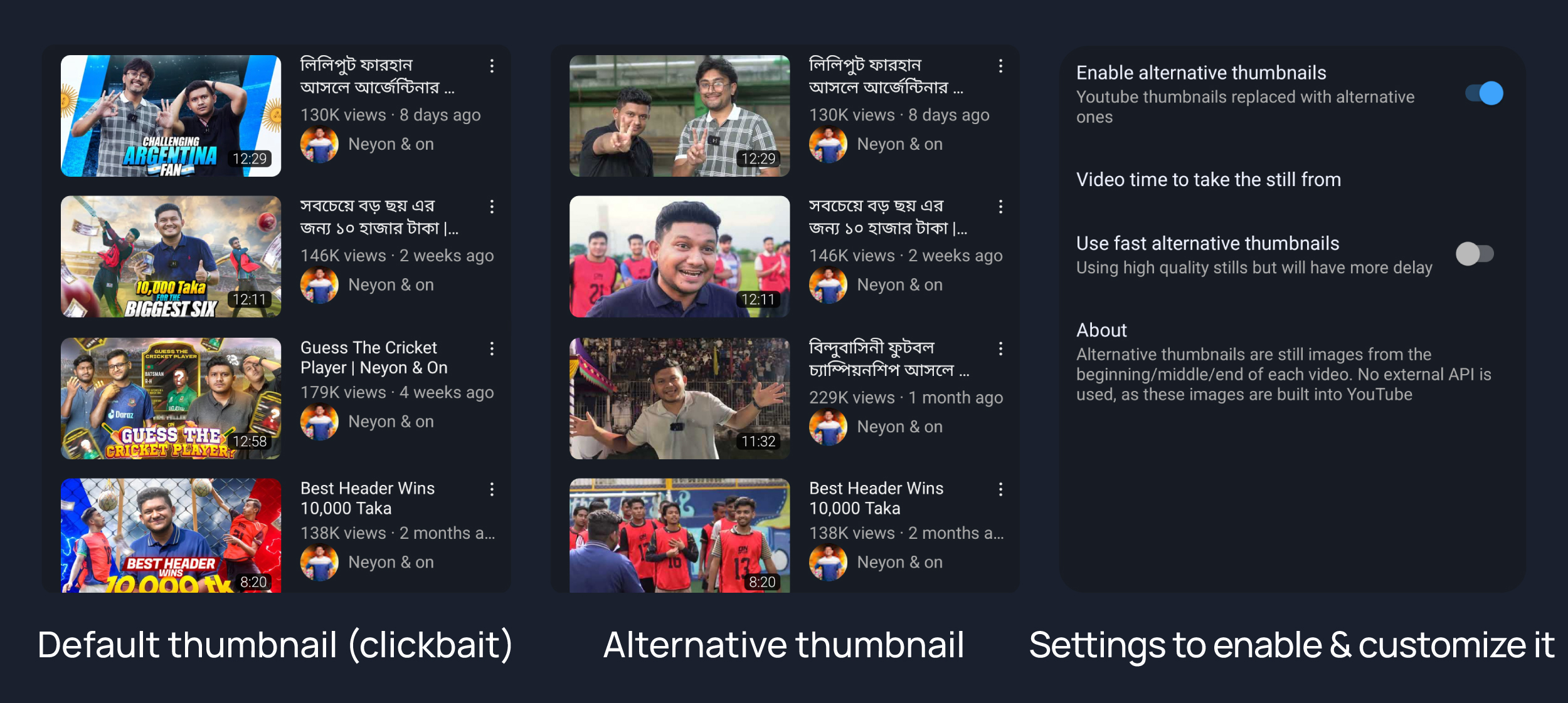 YouTube thumbnails will replaced with alternative ones