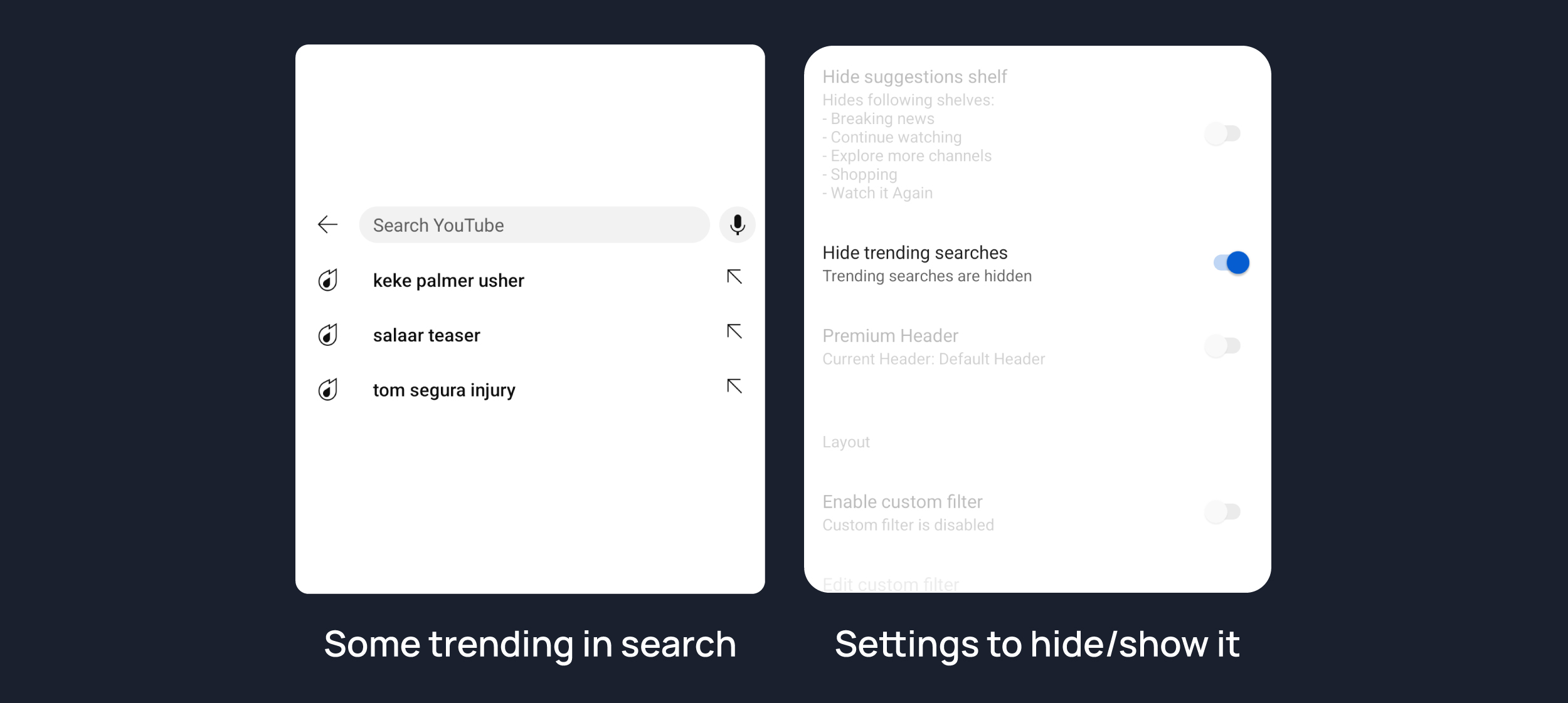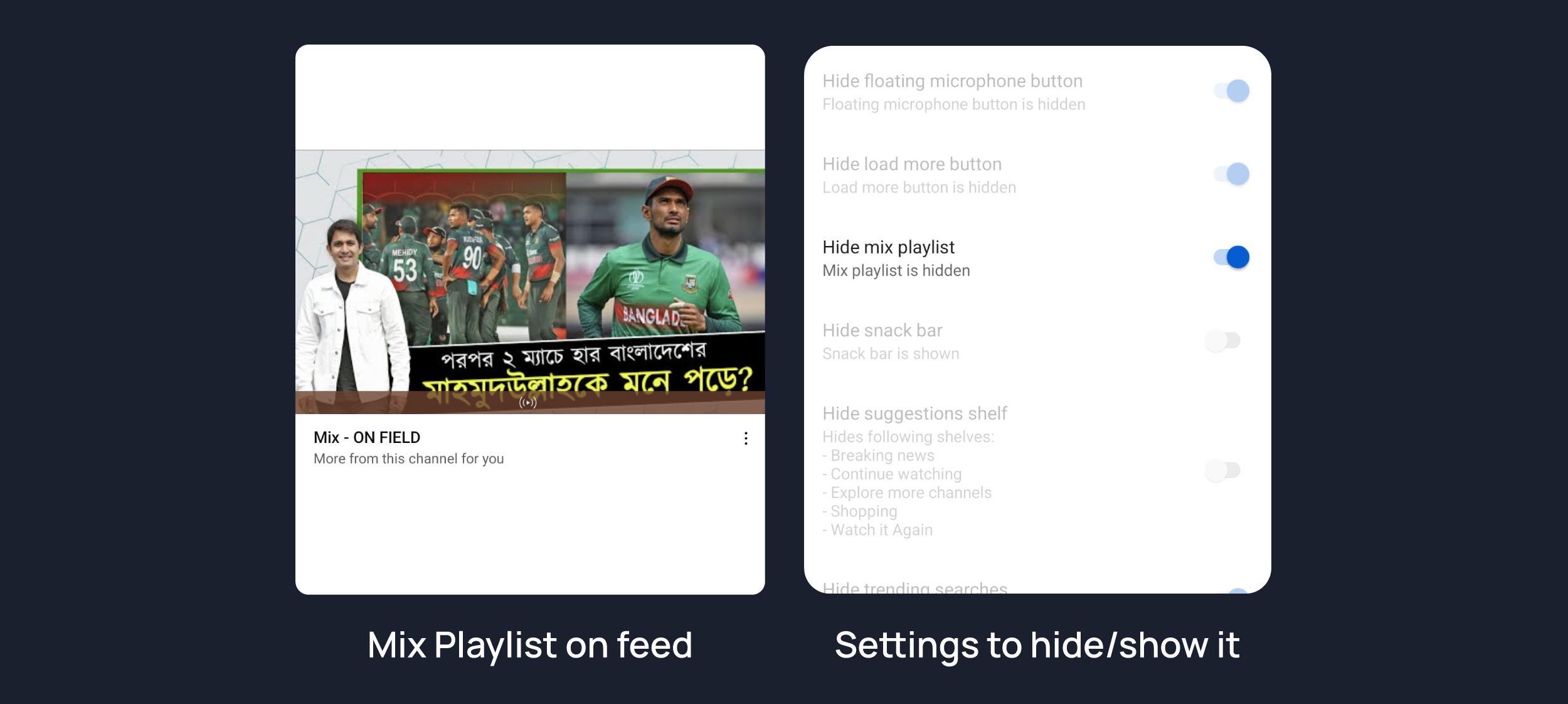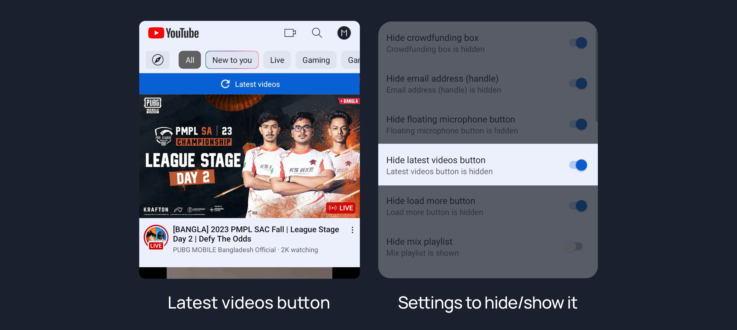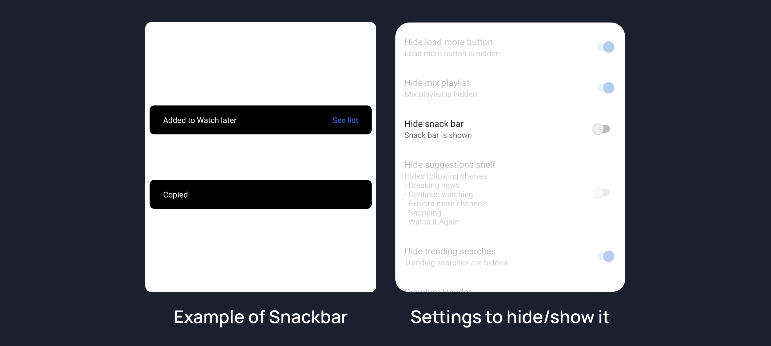 💡 You can hide Category bar in feed, Category bar in related videos, Category bar in search results separately
