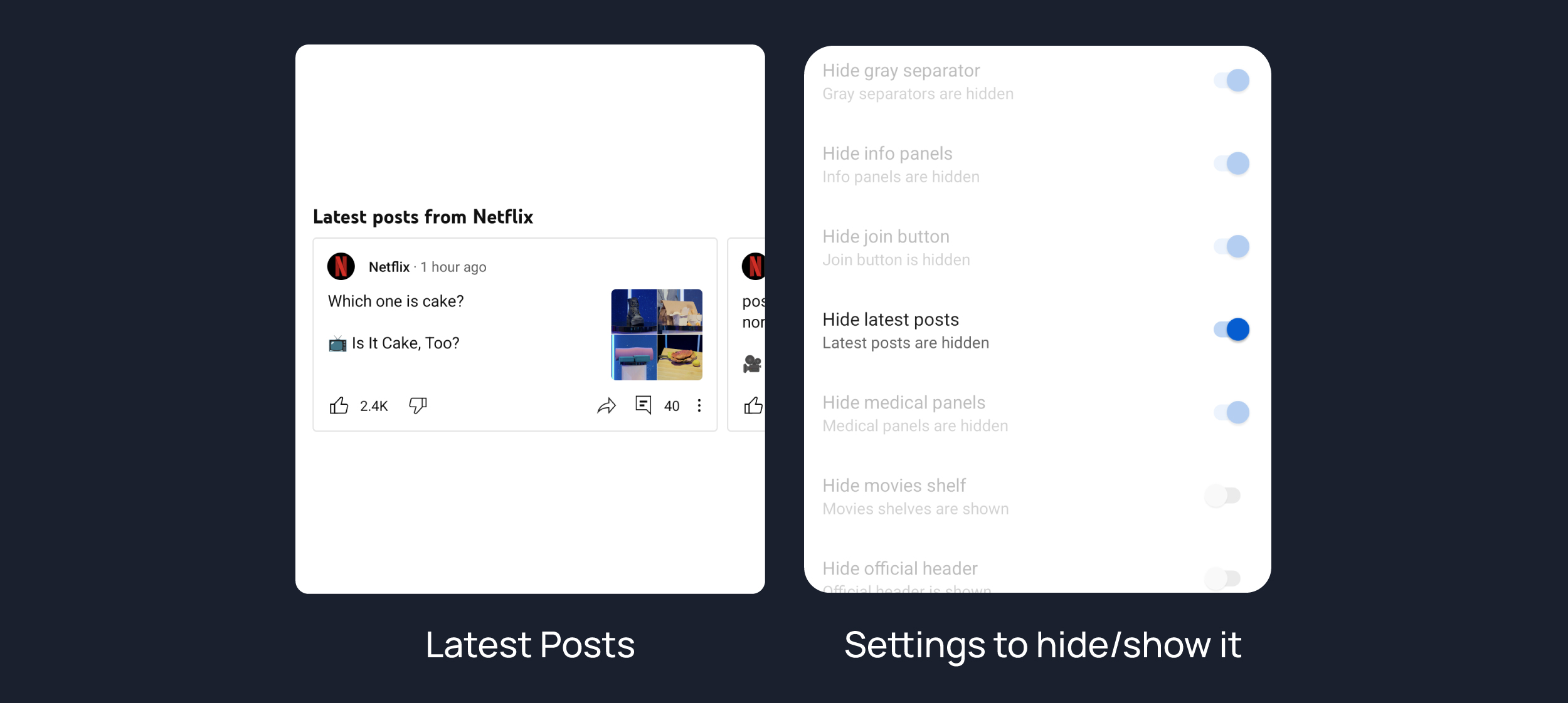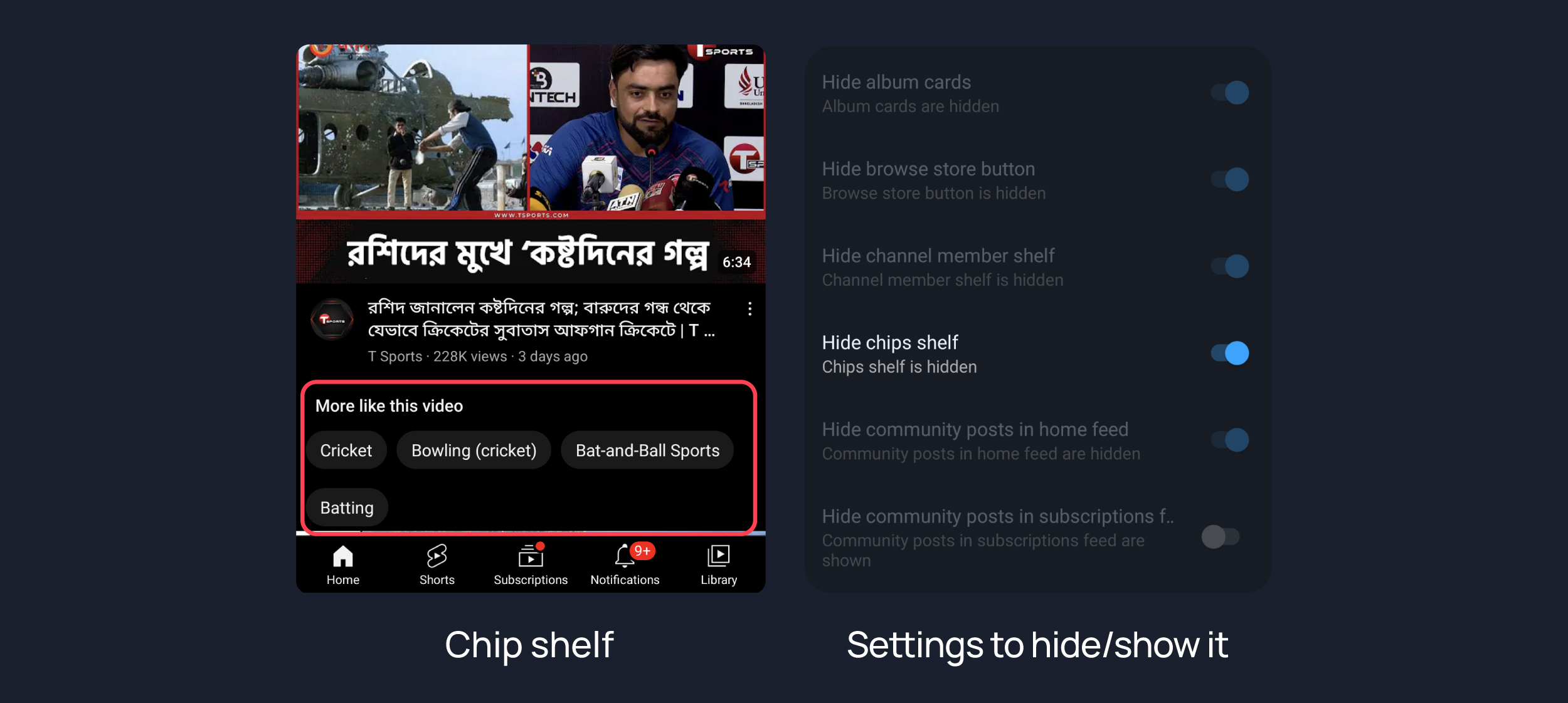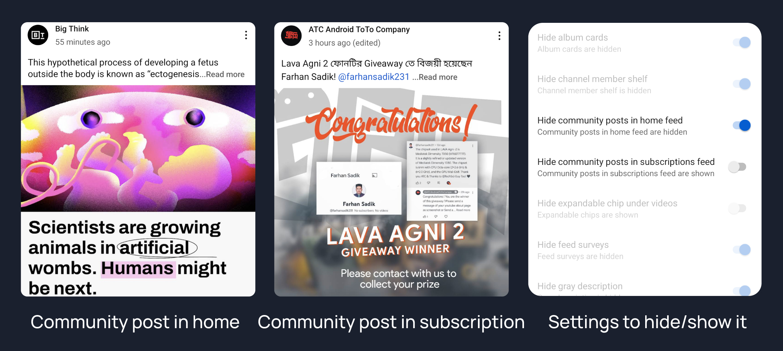 💡 You can hide Community posts in home feed & Community posts in subscriptions feed separately