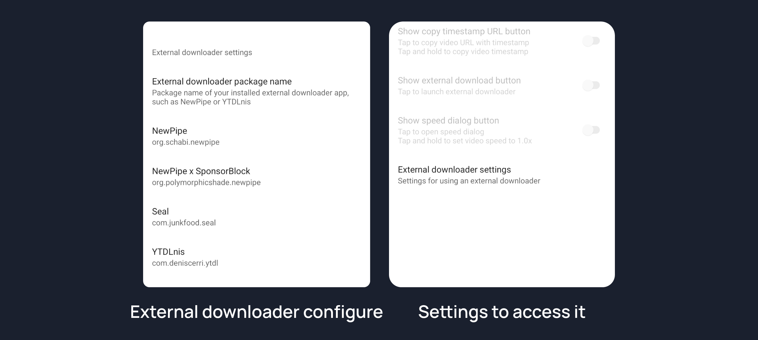 External downloader settings