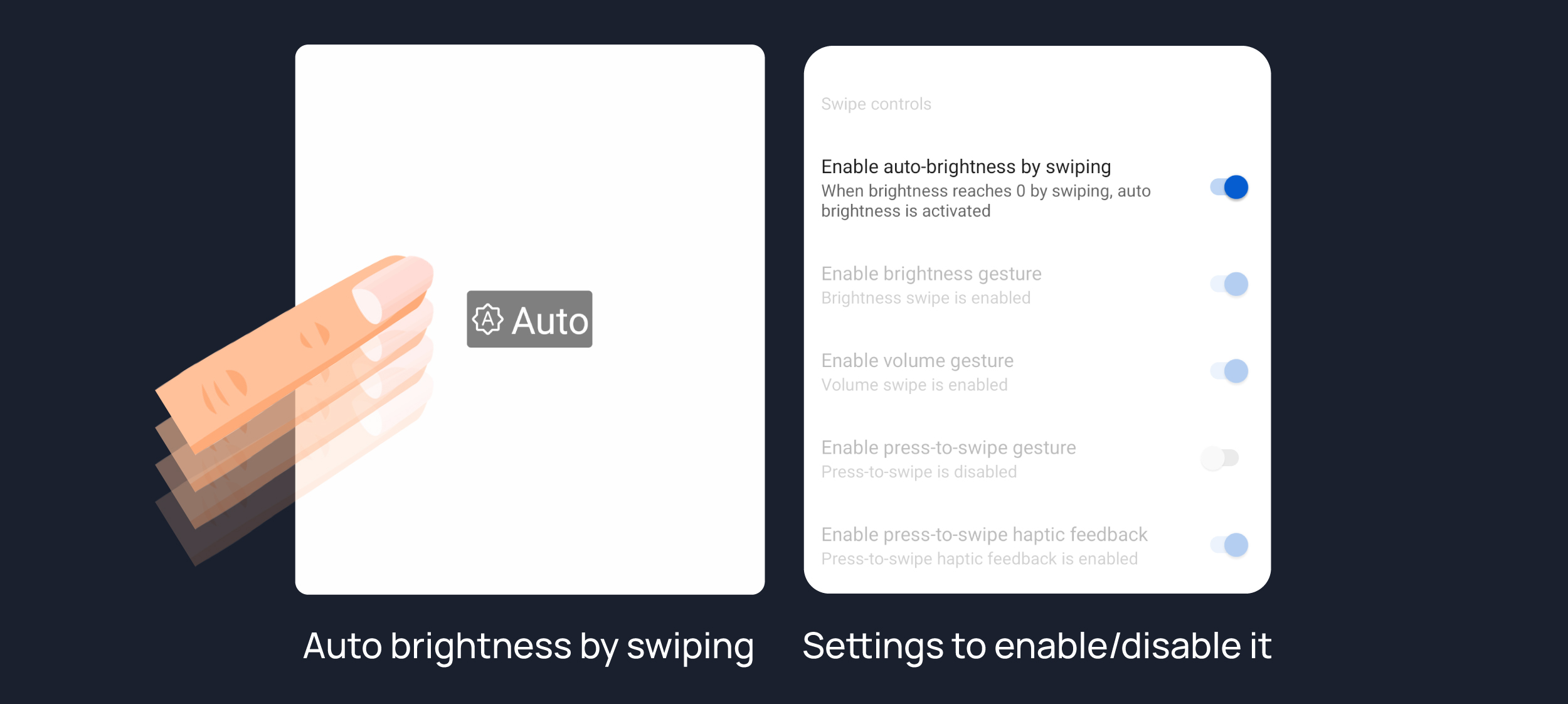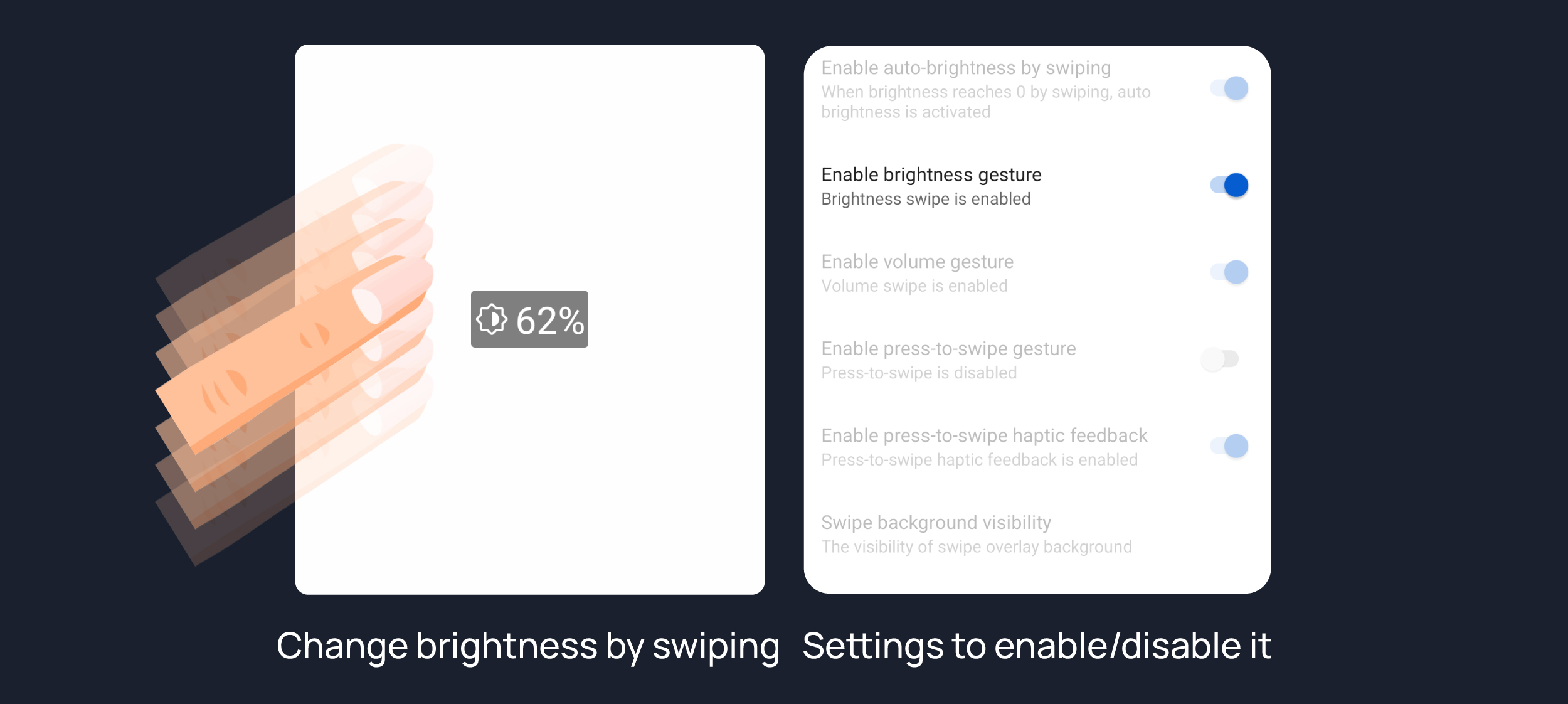 Enable brightness swipe control.