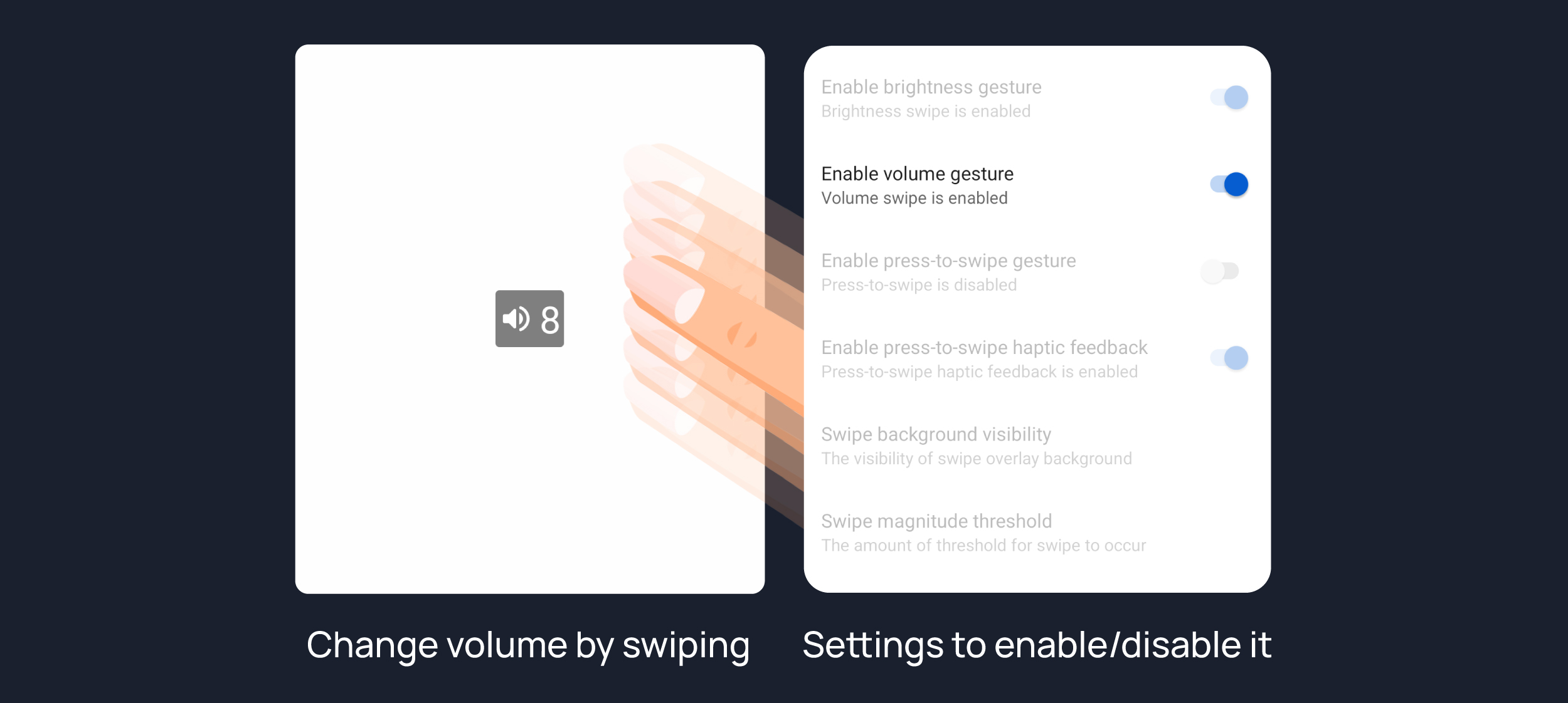 Enables volume swipe control.