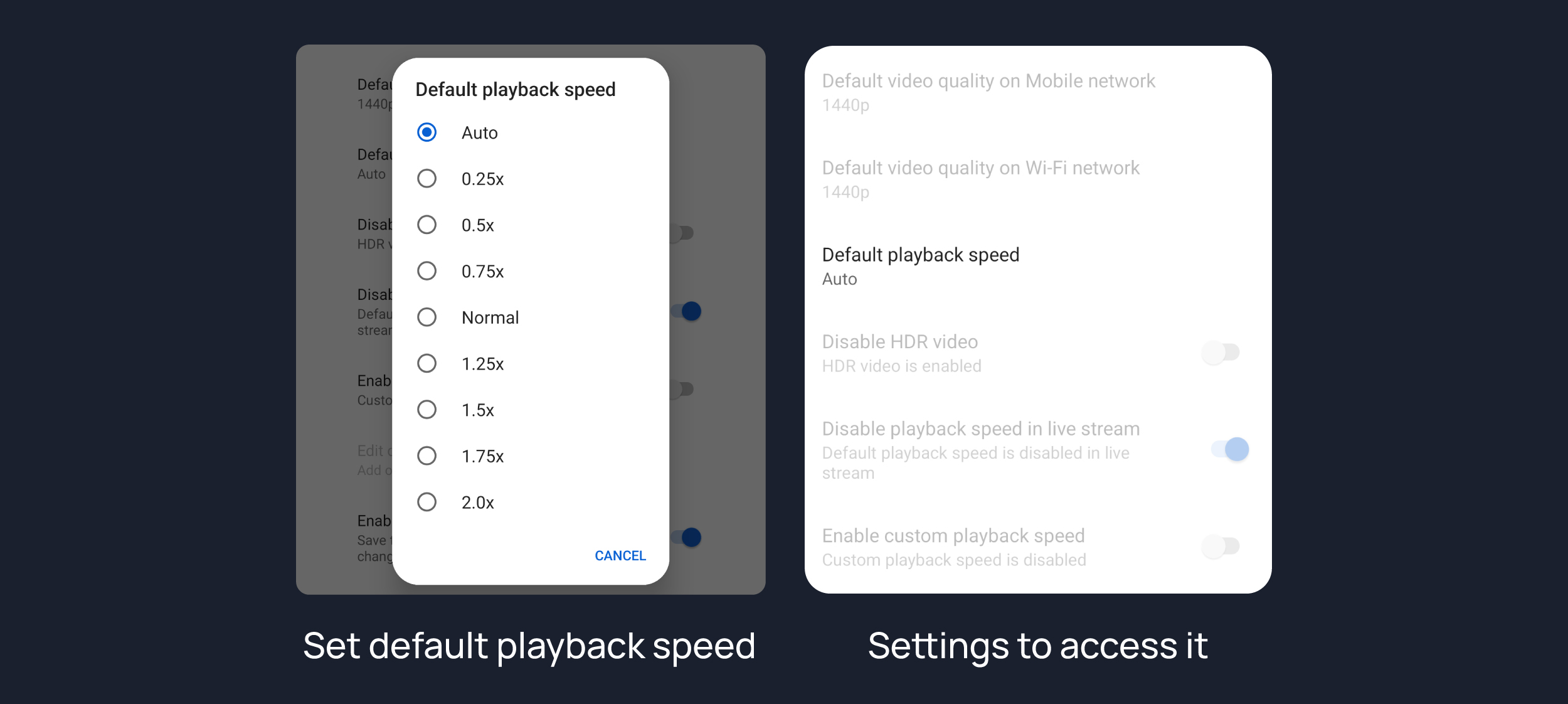 Adds ability to set default playback speed.