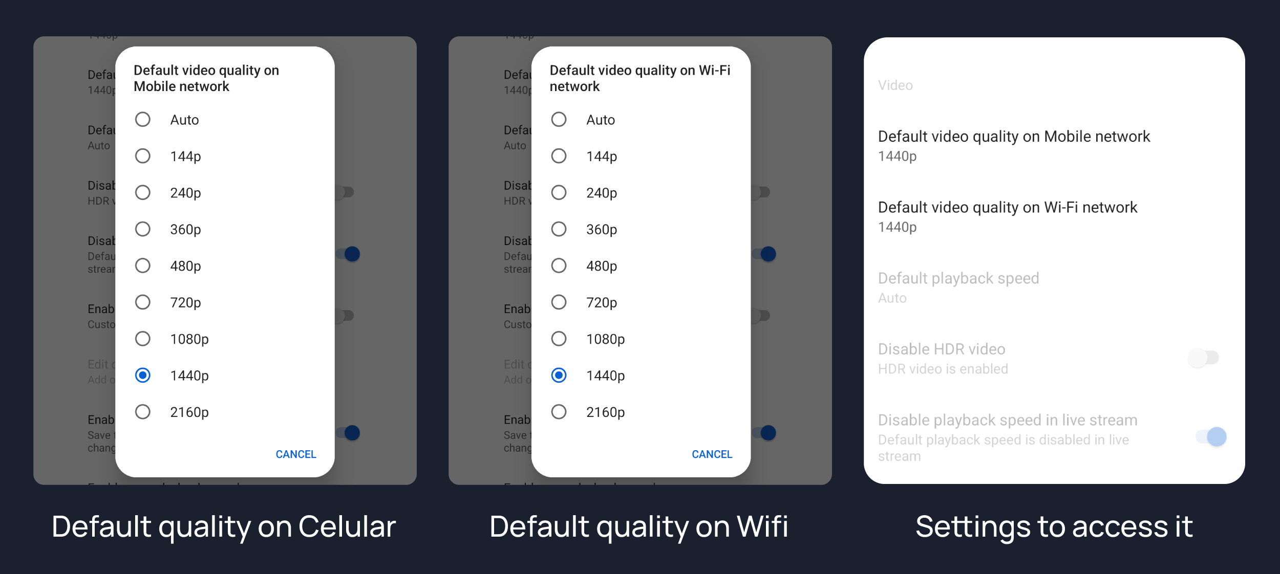 You can set default video quality for Mobile Network & Wi-Fi seperately