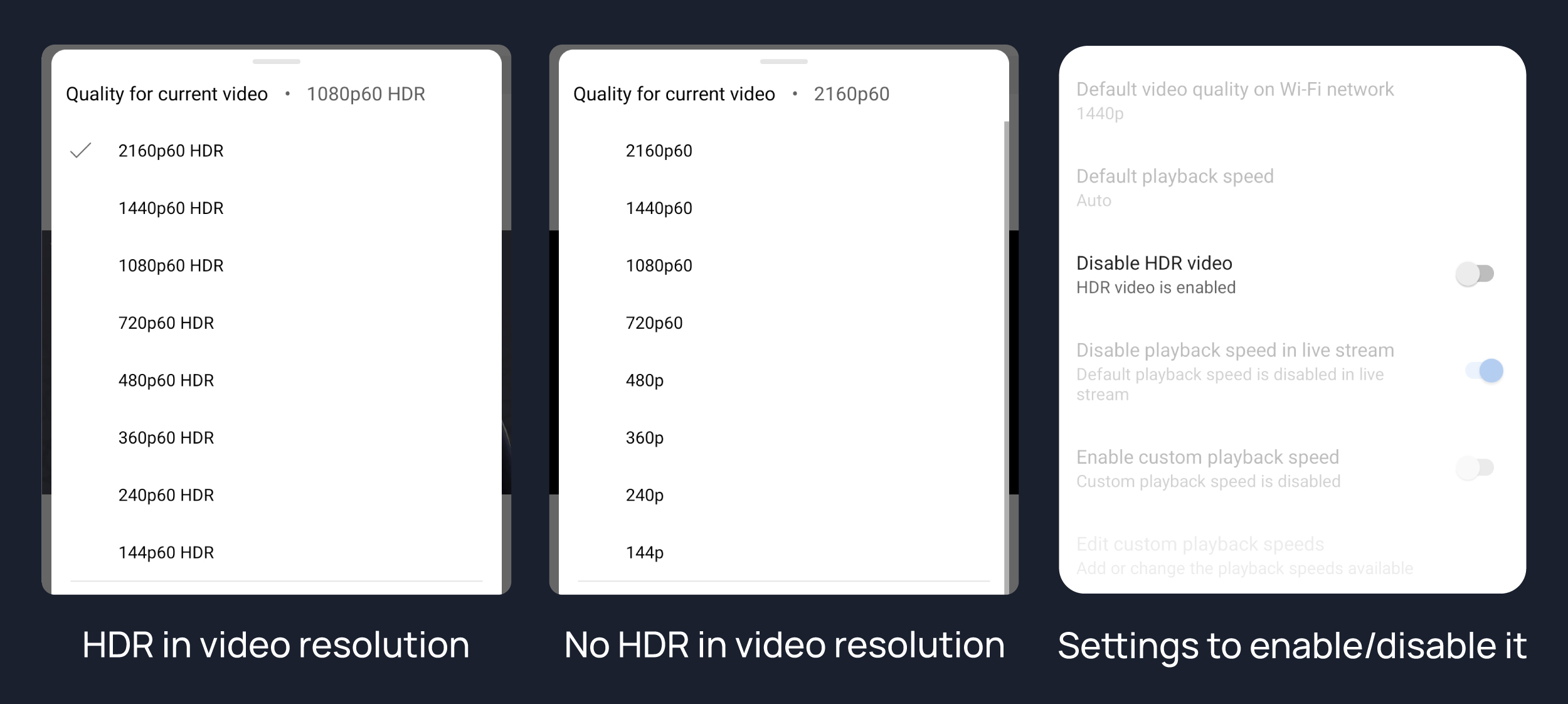 Disables HDR video experience.