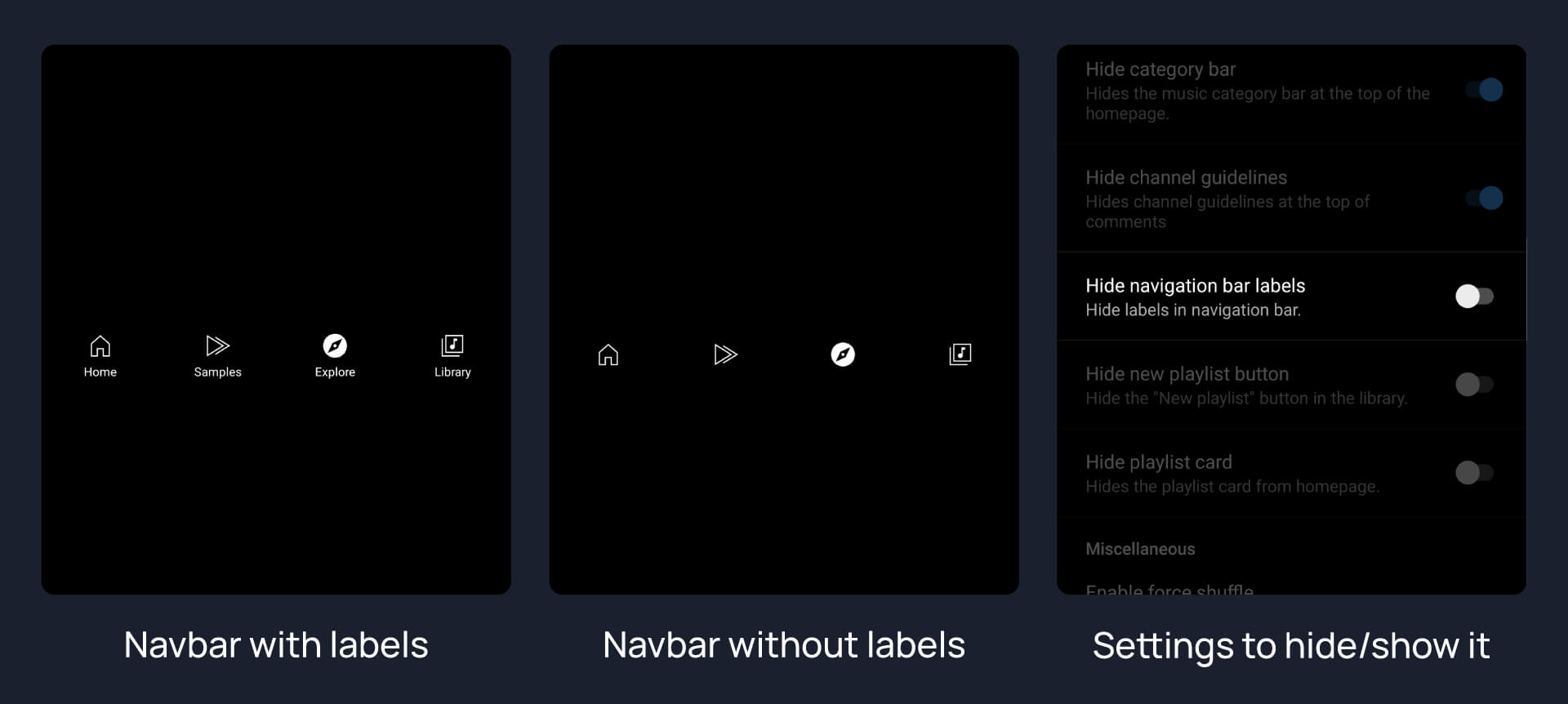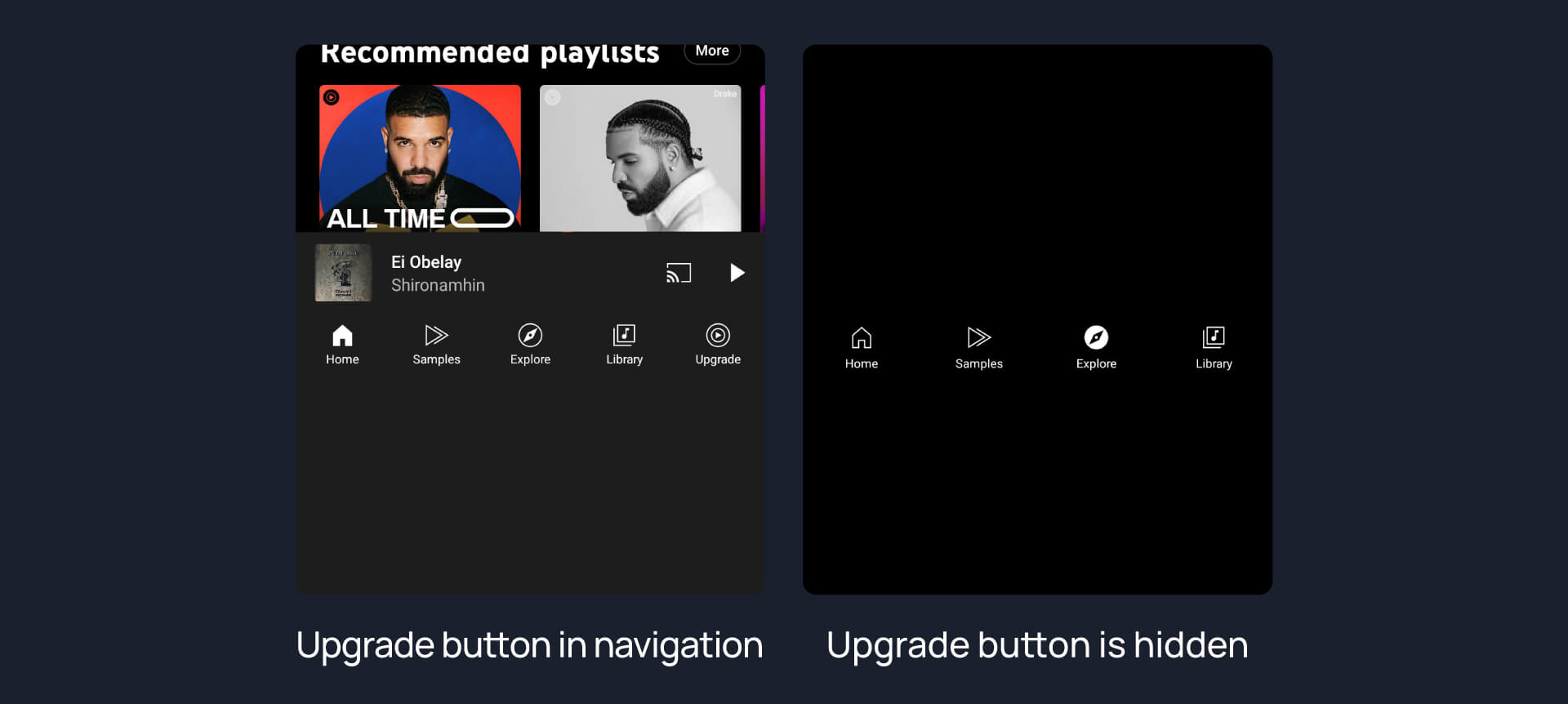 Option to hide Explore Home, Library, Samples & Upgrade button.